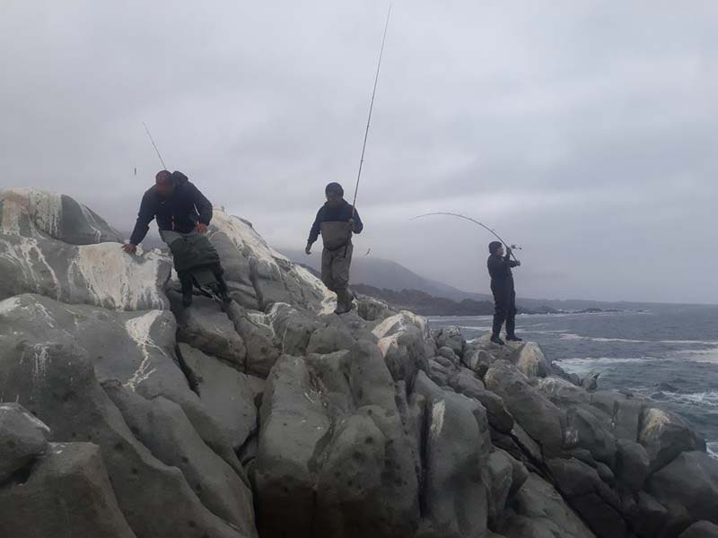 En realidad el mar estaba bastante movido, algo de viento y bastante helada la tarde, los changoritos optamos por quedarnos en el campamento, los tucanes se las emplumaron por varios sectores al sur del campamento y los jack daniel sondearon la playa del campamento y luego el sector de michilla.