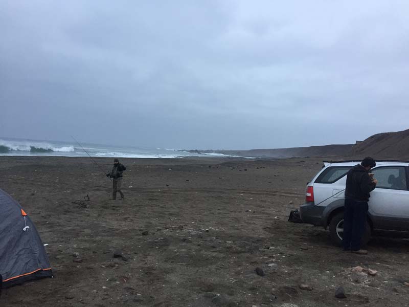 Don Jhony luchaba por el lado sur de la playa, a ratos dejaba lanzar pero luego había que cobijarse, aún así no se apreciaba mucha actividad de los pájaros que indicara la presencia de cardúmenes cerca.